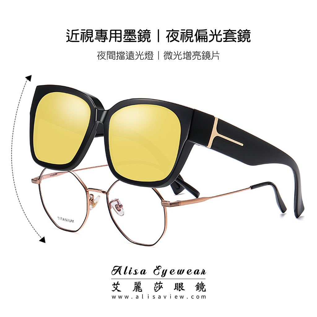 【艾麗莎】男女士外掛偏光夜視套鏡|抗UV400近視專用墨鏡|進口TR90輕量材質大方框太陽眼鏡|開車旅遊海邊19002